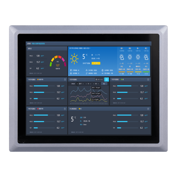 ● Screen 17" resolution 1280×1024, aluminum alloy front panel IP65 waterproof, optional capacitive touch screen or resistive touch screen
